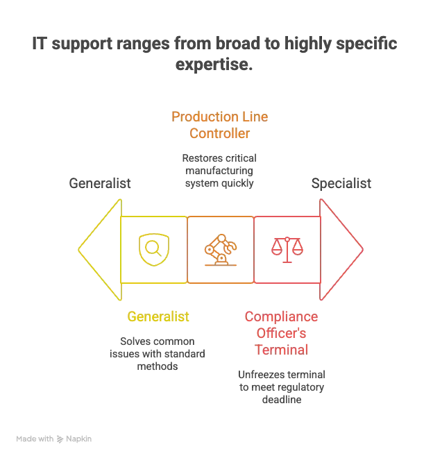 A generalist solves the surface problem. A specialist understands the business implications and solves the root cause faster because they’ve seen it a dozen times before.
